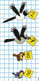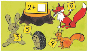 Если подставить в окошко карточку, которую несёт ёжик, то получится выражение 2 + 5.