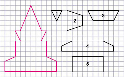 5. Можно ли из фигур с номерами 1, 2, 3, 4, 5 выложить такую башню? Какой фигуры не хватает? Начерти её. Как показать практически, что башня - симметричная фигура?