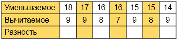 Повтори случаи табличного вычитания.