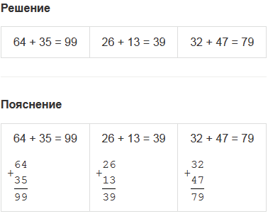 | 64 + 35 | 26 + 13 | 32 + 47 |