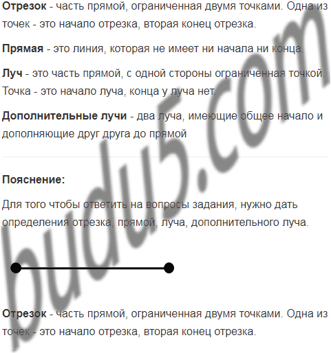 Проверьте, помните ли вы, что означают слова "отрезок", "прямая", "луч", "дополнительные лучи". Объясните значения этих слов.