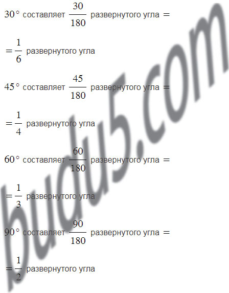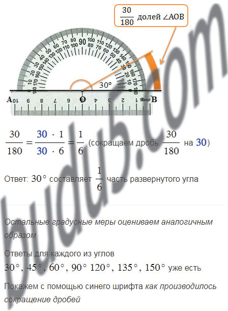 Какую часть развёрнутого угла составляют 30°, 45°, 60°, 90° 120°, 135°, 150°?