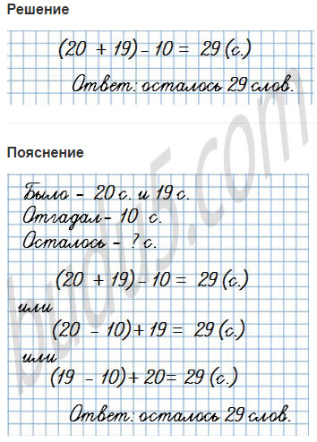 3. В кроссворде было 20 слов, записанных в столбик, и 19 слов, записанных в строчку. Дима уже отгадал 10 слов. Сколько слов осталось отгадать Диме?