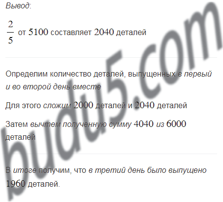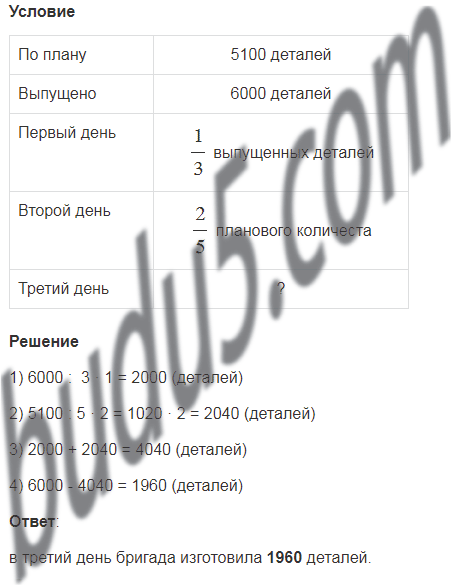 Бригада изготовила за 3 дня 6000 деталей при плане 5100 деталей. Причём в первый день была изготовлена треть всех выпущенных деталей, а во второй день -