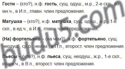 Выпиши из предложения все имена существительные и разбери их как часть речи. Можешь ли ты сразу сказать, какая запись будет длиннее – к существительному матушка или фортепьяно? Почему? Объясни.