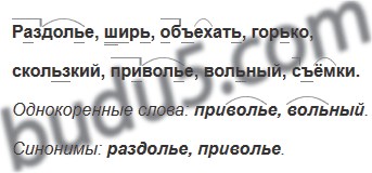 Раздол_е, шир_, об_ехат_, гор_ко, скол_зкий, привол_е, вол_ный, с_ёмки.