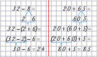 Повтори переместительный (при перемене мест слагаемых сумма не меняется) и сочетательный законы сложения (два соседних слагаемых можно заменить их суммой).