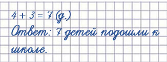 4 + 3 - К школьному двору подошли 4 мальчика и 3 девочки. Сколько детей подошло к школе?
