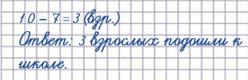 10 - 7 - К школьному двору подошли 10 человек. Из них 7 детей, а остальные - взрослые. Сколько взрослых подошло к школе?