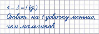 4 - 3 - К школьному двору подошли 3 девочки и 4 мальчика. На сколько меньше девочек подошло к школе?