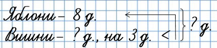 5. На пришкольном участке посадили 8 яблонь, а вишен на 3 меньше. Сколько всего яблонь и вишен посадили на пришкольном участке?