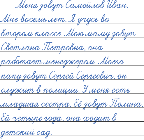 Образец. Меня зовут ... .