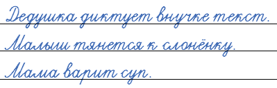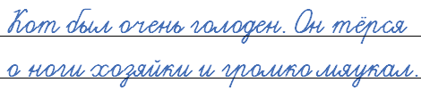 Подпишем рисунки: левый верхний - Девочка пишет под диктовку; левый нижний - Мальчик тянет руку к игрушке; правый - Кот просит еду. Для подписи рисунков мы использовали предложения.