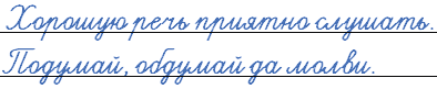 Объясним смысл поговорок. Хорошую речь приятно слушать. (Если человек говорит грамотно, красиво и его речь полна смысла, то его и слушать приятно) Подумай, обдумай да молви. (Прежде, чем что-то сказать, хорошо подумай)