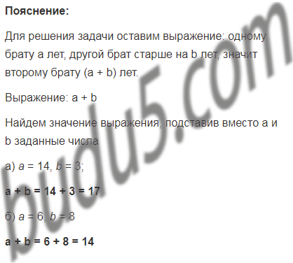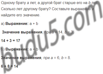 Одному брату а лет, а другой брат старше его на b лет. Сколько лет другому брату? Составьте выражение и найдите его значение при: