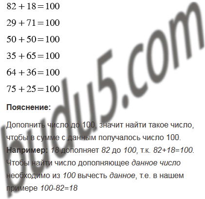 Дополните до 100 числа: 82; 29; 50; 35; 64; 75.