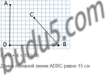 4. Начерти ломаную из трёх звеньев длиной 3 см, 4 см и 2 см. Найди её длину.