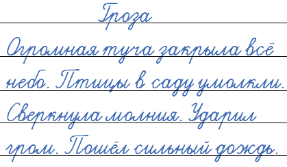 3. Пошёл сильный дождь. Сверкнула молния. Птицы в саду умолкли. Огромная туча закрыла всё небо. Ударил гром.