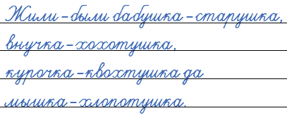 1. Жили-были бабушка-старушка, внучка-хохотушка, курочка-квохтушка да мышка-хлопотушка. Бабушка каждый день за водой ходила, и внучка воду носила, и курочка к себе за печку воду таскала, и мышка водицу добывала.