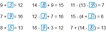 9 +  = 12 14 -  + 9 = 15 11 - (13 - ) = 7