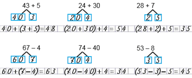 К 43 прибавить 5. Представляю число 43 в виде суммы разрядных слагаемых 40 и 3. Удобно к 3 приба­вить 5, получится 8.