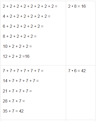 2 + 2 + 2 + 2 + 2 + 2 + 2 + 2      2 • 8 =