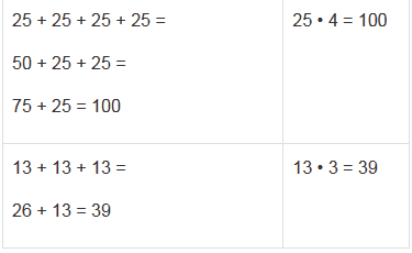 3 • 4 = 3 + 3 + 3 + 3 = 12