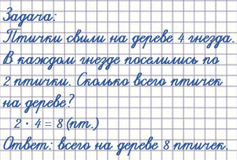 8 птичек поселились в гнездах на дереве. В каждом гнездышке было по 2 птички. Сколько всего гнёзд на дереве?