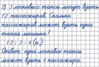 Легковое такси может взять 4 пассажиров. Сколько таких маши­н нужно для 12 пассажиров?