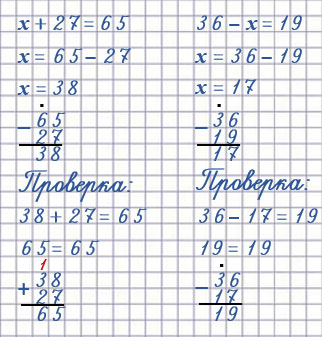 х + 27 = 65      36 - х = 19      х - 8 = 0