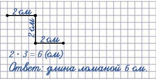 8. Начерти ломаную из трёх звеньев, длина каж­дого звена которой равна 2 см. Найди длину ломаной.