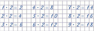 1 • 2 = 2 2 • 2 = 4 3 • 2 = 6 |