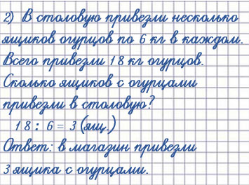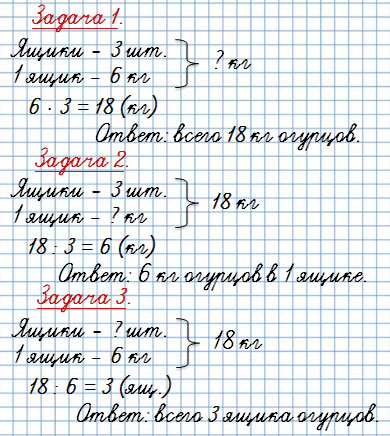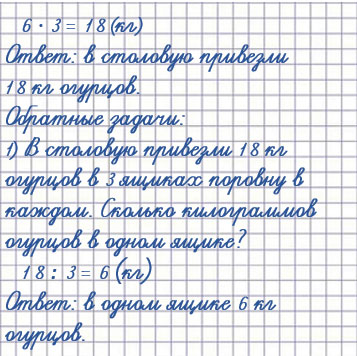 4. В столовую привезли 3 ящика с огурцами. В каждом ящике было по 6 кг огурцов. Сколько всего килограммов огурцов привезли в столовую?