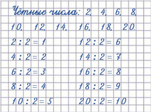 Чётные числа: 2, 4, 6, 8, 10, 12, 14, 16, 18, 20