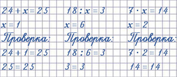 | 24 + х = 25 | 18 : х = 3 | 7 • х = 14 |