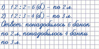 6. 12 л молока разлили в банки, по 2 л в каждую. Сколько понадобилось банок? Сколько понадобится трёхлитровых банок, чтобы разлить 12 л молока?