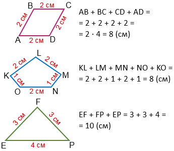 1 + 2 + 2 + 2 + 1 = 8 (см)