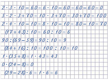 | 2 • 3 • 10 - 60 = 0 | (17 + 43) : 10 = 6 |