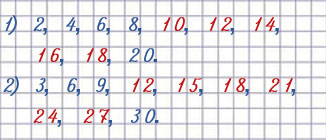 2) 3, 6, 9, 12, 15, 18, 21, 24, 27, 30.