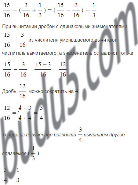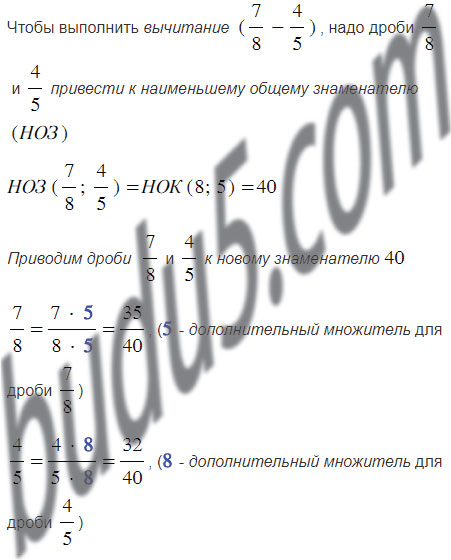 Повторите вычитание дробей с разными знаменателями.
