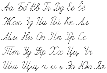 Назовём буквы русского алфавита: А [а], Б [бэ], В [вэ], Г [гэ], Д [дэ], Е [й'э], Ё [й'о], Ж [жэ], З [зэ], И [и], Й - и краткое, К [ка], Л [эл'], М [эм], Н [эн], О [о] П [пэ], Р [эр], С [эс], Т [тэ], У [у], Ф [эф], Х [ха], Ц [цэ], Ч [ч'э], Ш [ша], Щ [щ'а], ъ - твёрдый знак, ы [ы], ь - мягкий знак, Э [э], Ю [й'у], Я [й'а].