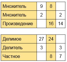 1) Если произведение двух множителей разделить на один из множителей, то получится второй множитель.