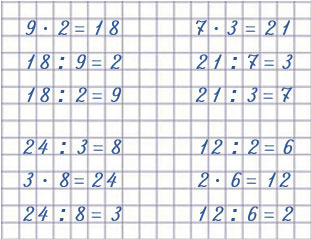18 : 9 = 2 21 : 7 = 3 3 • 8 = 24 2 • 6 = 12