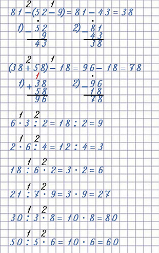 | 81 - (52 - 9) = 38 | 6 • 3 : 2 = 9 |