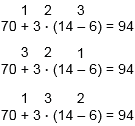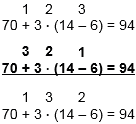 | (38 + 58) - 18 = 78 | 2 • 6 : 4 = 3 |