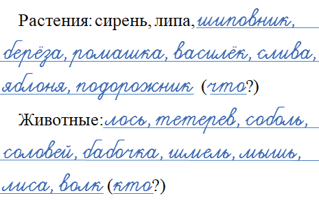 В скобках напиши вопрос, на который отвечают слова (кто? или что?).