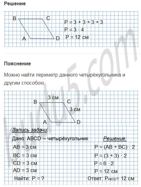 4. Обозначь четырёхугольник буквами и найди его периметр.