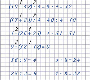 (50 - 42) • 4 = 32 1 • (26 + 25) = 51