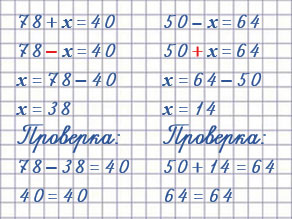 1) Не могу решить 78 + х = 40, потому что сумма должна быть больше слагаемого.