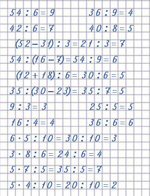 54 : 6 = 9 (52 - 31) : 3 = 3